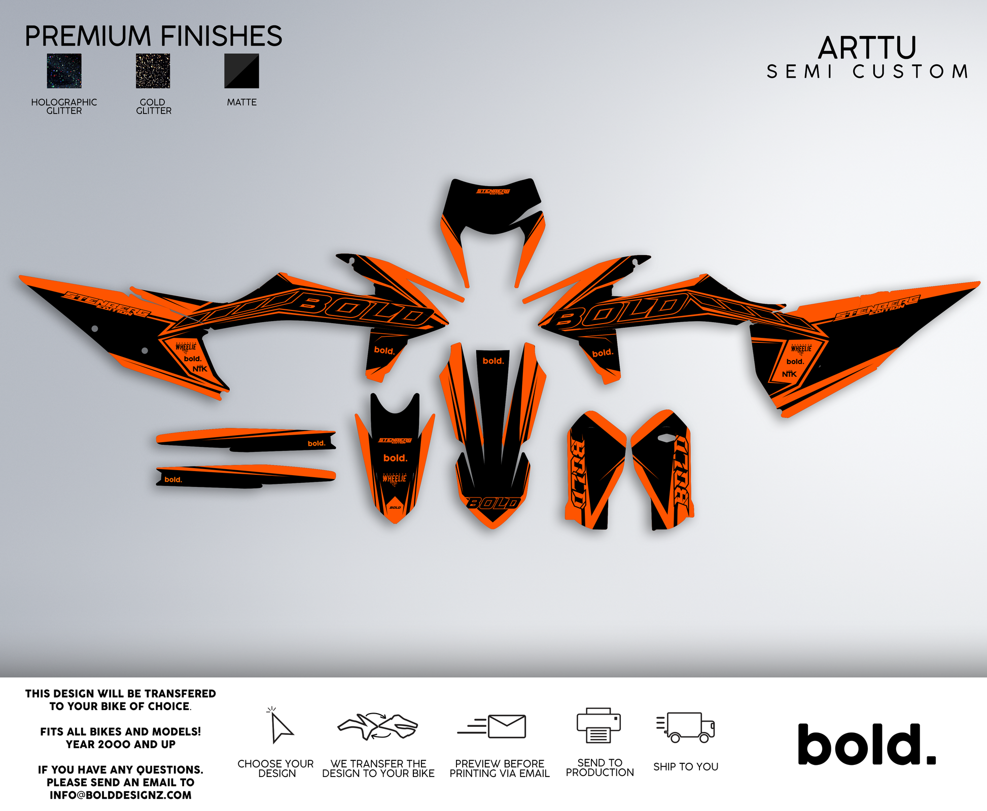 At Bolddesignz, the order process is designed to be easy, streamlined, and completely customized to ensure you get the perfect graphics for your bike. Every customer receives personal attention from a professional designer, making the experience smooth and enjoyable.