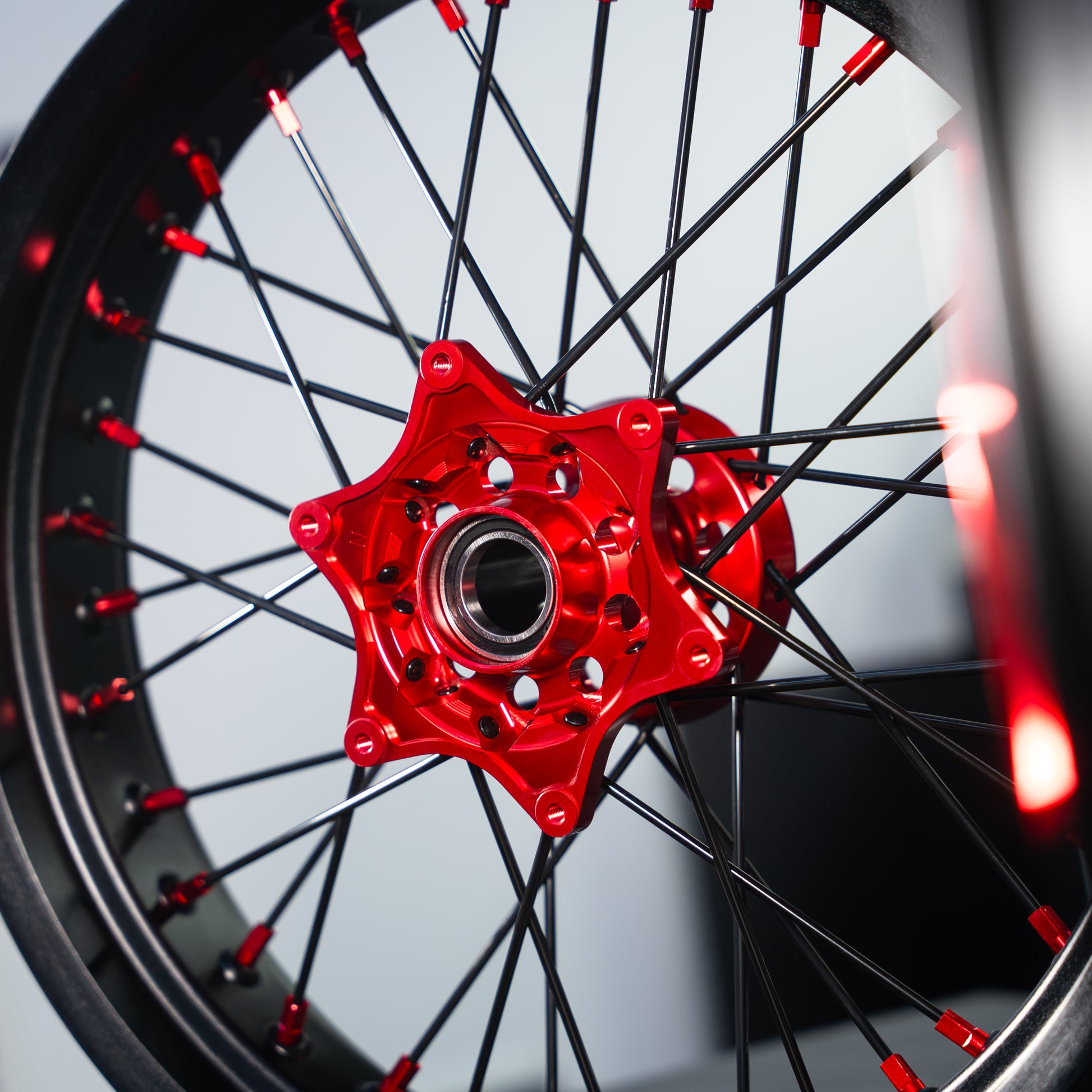 The bold. Black/Red - Supermoto Wheelset gives you the control and confidence to ride harder, corner faster, and stand out everywhere you go. Each set is crafted to match perfectly with your setup - making your supermoto wheels look unique. Get a full customization with bold. Black/Red - Supermoto Wheelset - as a part of our lineup of premium supermoto rims, and bold wheel designs trusted by riders worldwide.