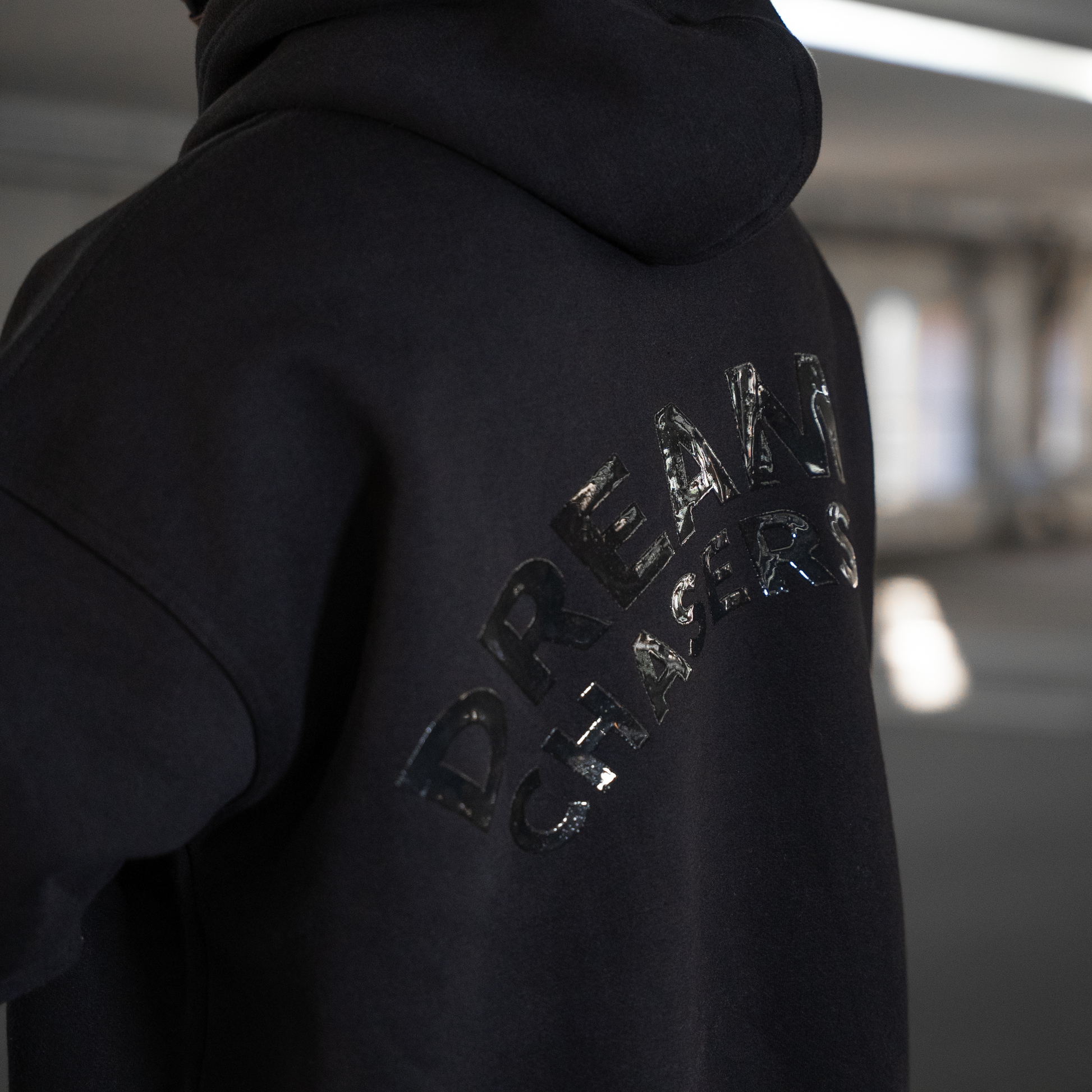 Ride bold. Live bold. Wear the bold. Dream Chaser Black Hoodie (oversize fit).