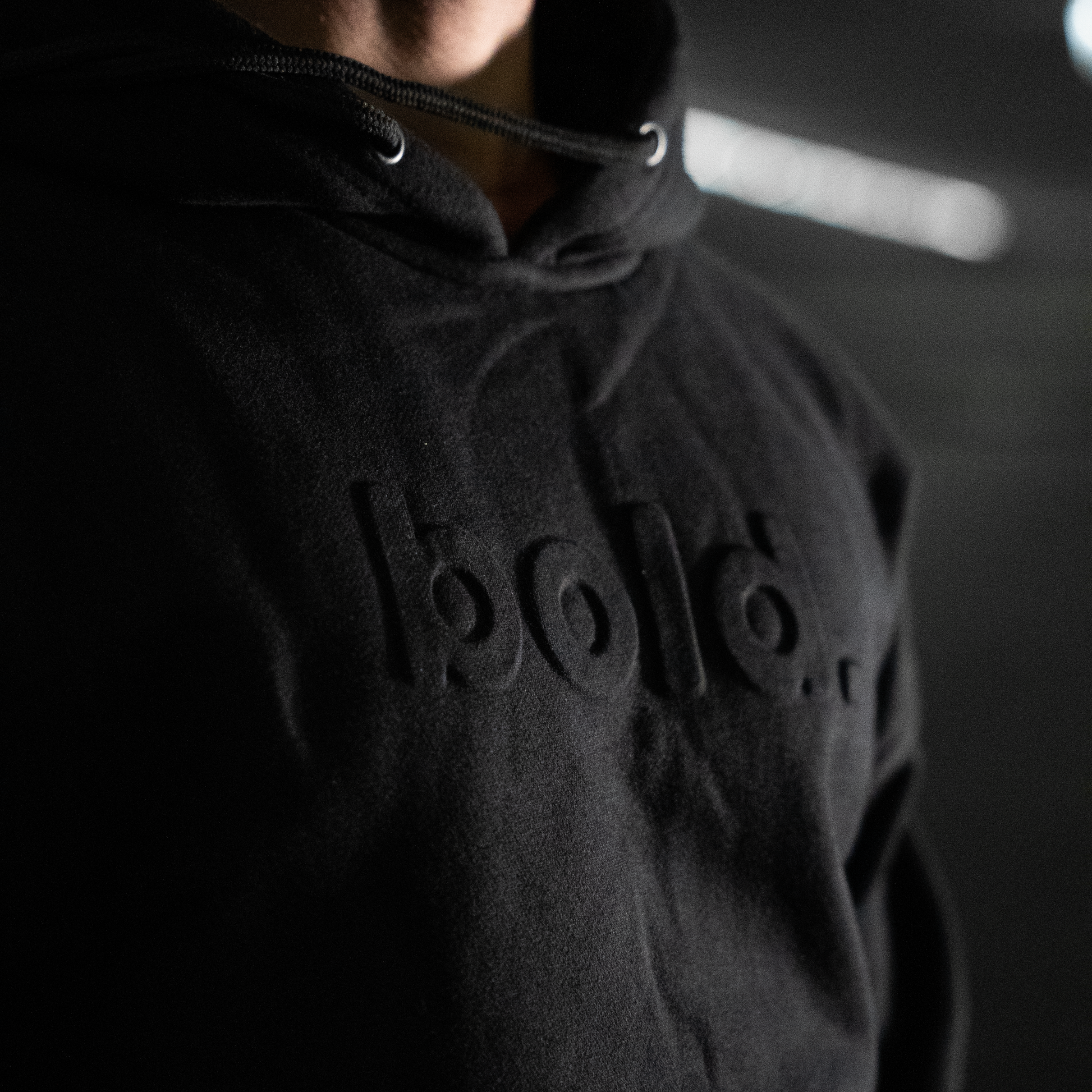 Ride bold. Live bold. Wear the bold. Black Embossed Hoodie.