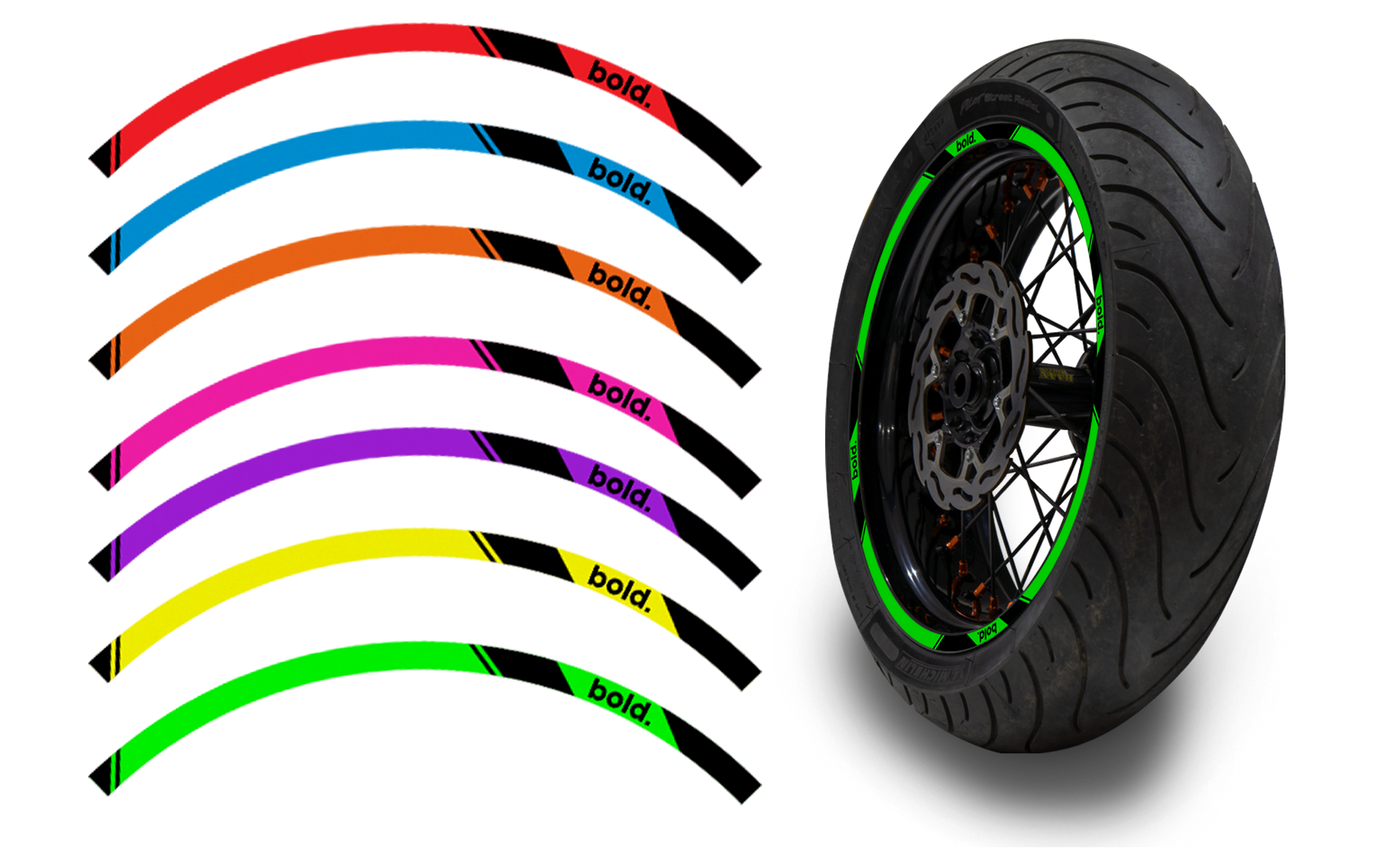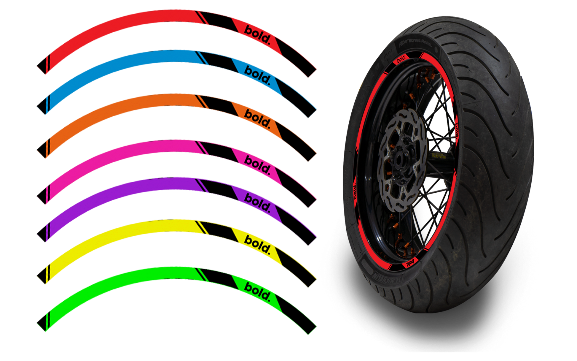 Your fully custom wheel stripes bring a much more personalized, and unique look to your bike. Match the wheels to the rest of your bike. One of the best ways to up the style of your bike.