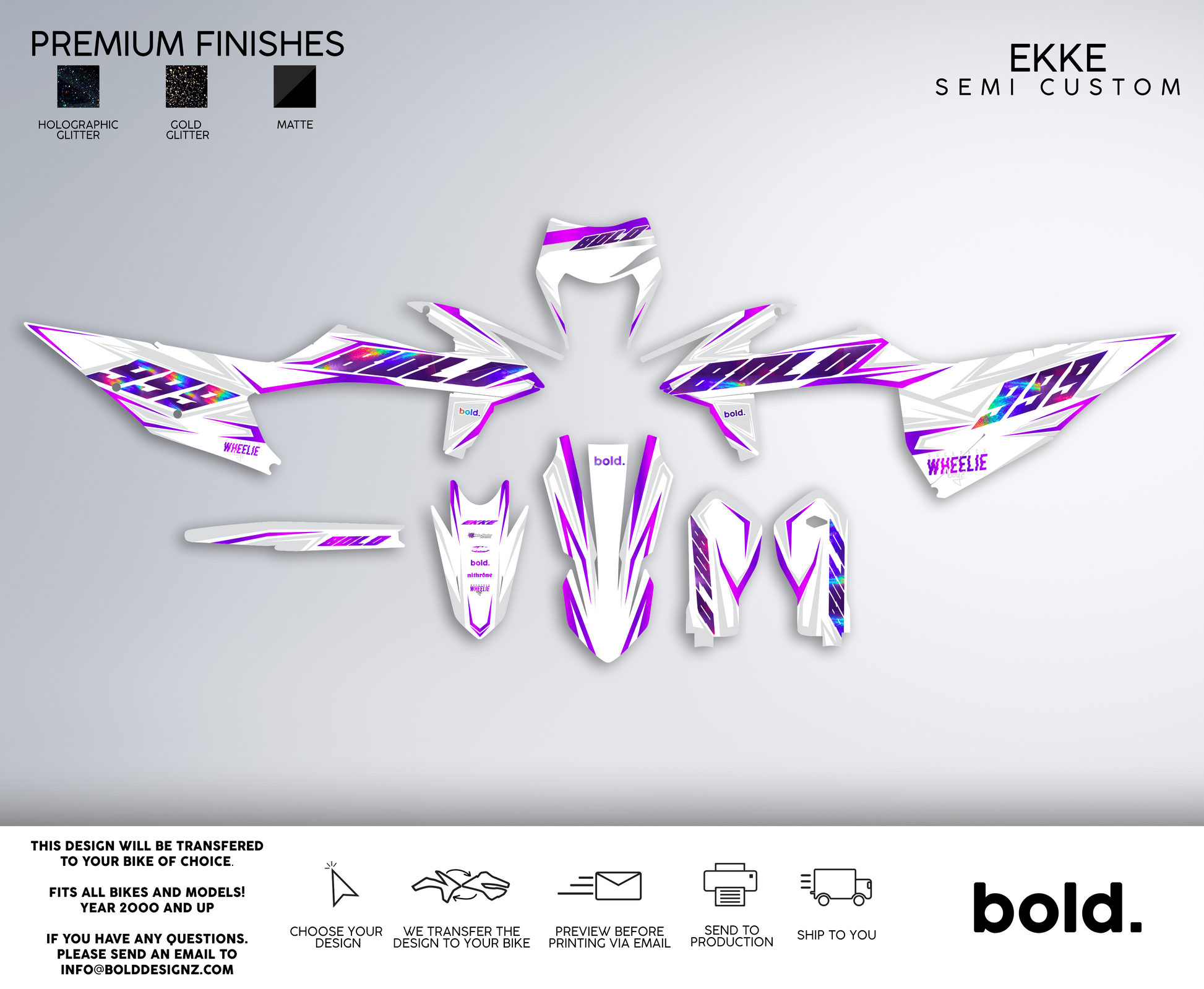 Your graphics will resist scratches, fading, and peeling, ensuring your bike maintains its head-turning looks for years to come. Don't settle for ordinary; embrace the extraordinary. Get your Bolddesignz Supermoto Semi-Custom Graphics and experience the thrill of riding a truly bold and unique bike.