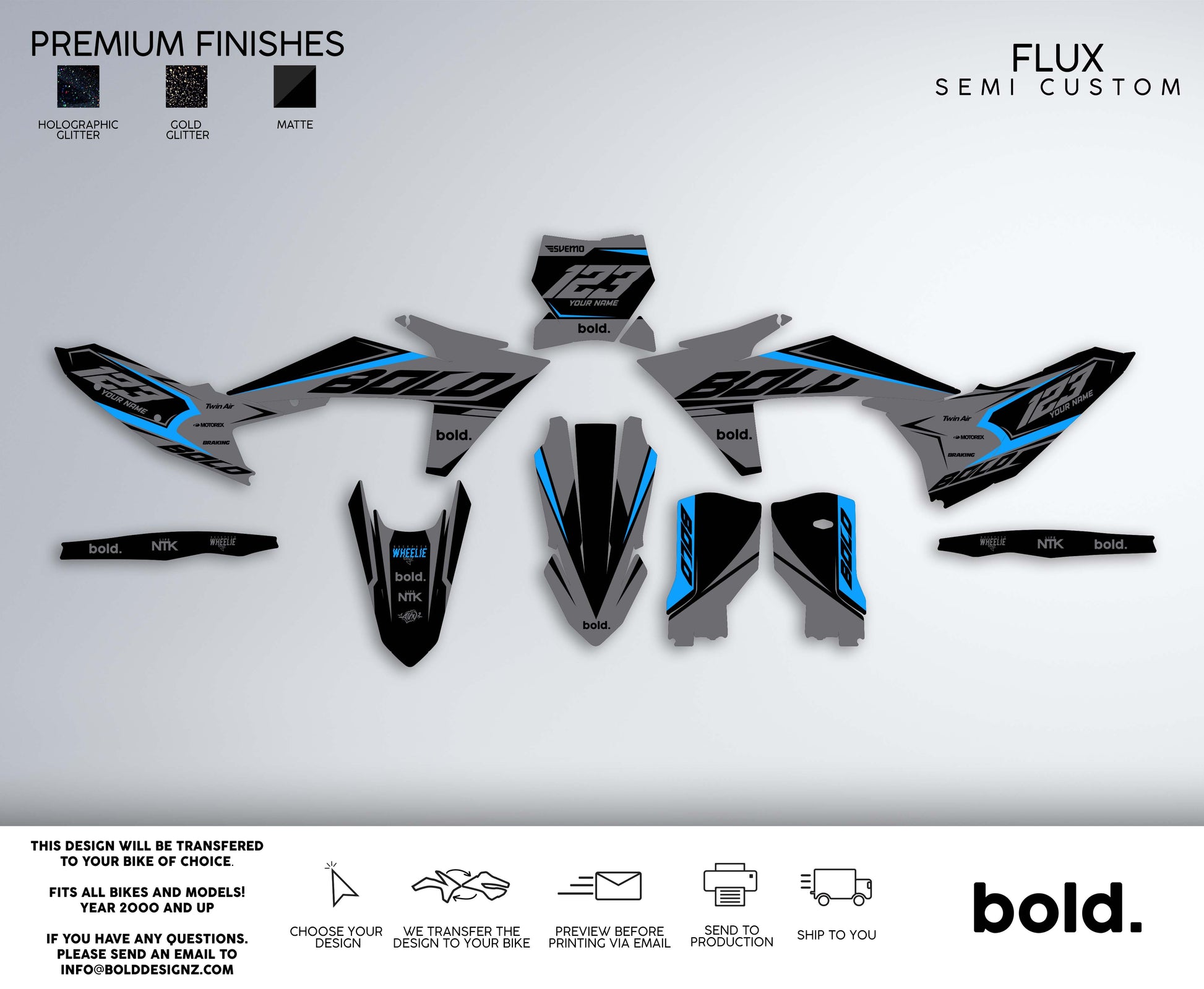 At Bolddesignz, the order process is designed to be easy, streamlined, and completely customized to ensure you get the perfect graphics for your bike. Every customer receives personal attention from a professional designer, making the experience smooth and enjoyable.