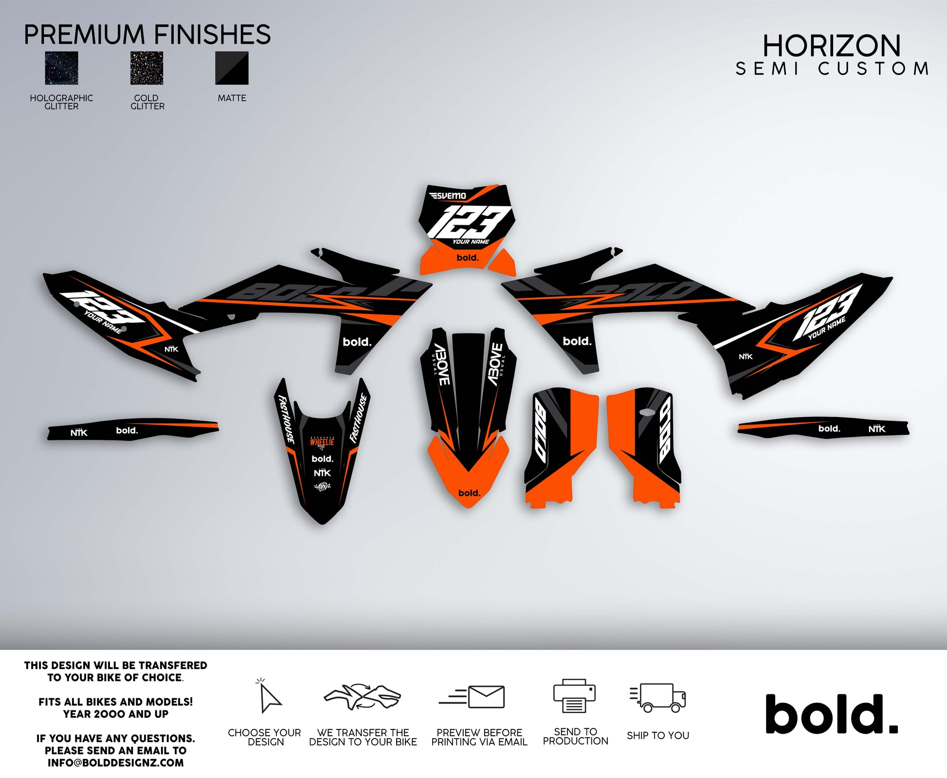 At Bolddesignz, the order process is designed to be easy, streamlined, and completely customized to ensure you get the perfect graphics for your bike. Every customer receives personal attention from a professional designer, making the experience smooth and enjoyable.