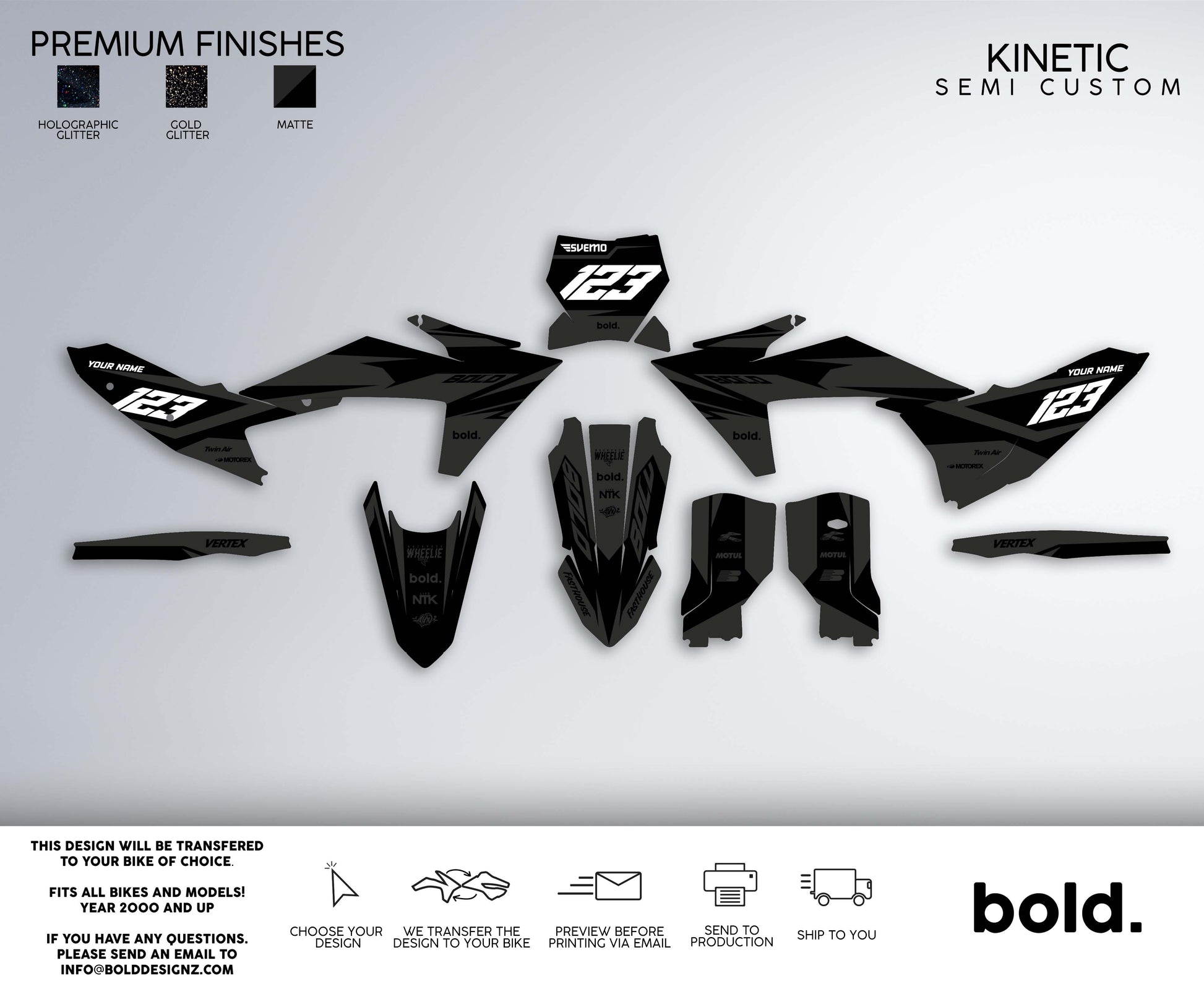 At Bolddesignz, the order process is designed to be easy, streamlined, and completely customized to ensure you get the perfect graphics for your bike. Every customer receives personal attention from a professional designer, making the experience smooth and enjoyable.