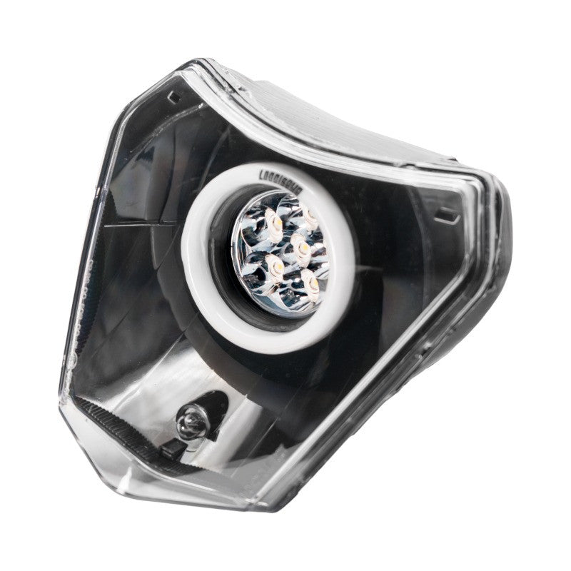 The KTM Locci's Angel Eye 4.0 - RGB LED HEADLIGHT (Ring Light) is built for riders who want their bike to stand out and perform, day or night. Made for racing, the track, or off-road, this headlight delivers bold style and upgraded functionality to complete your setup.