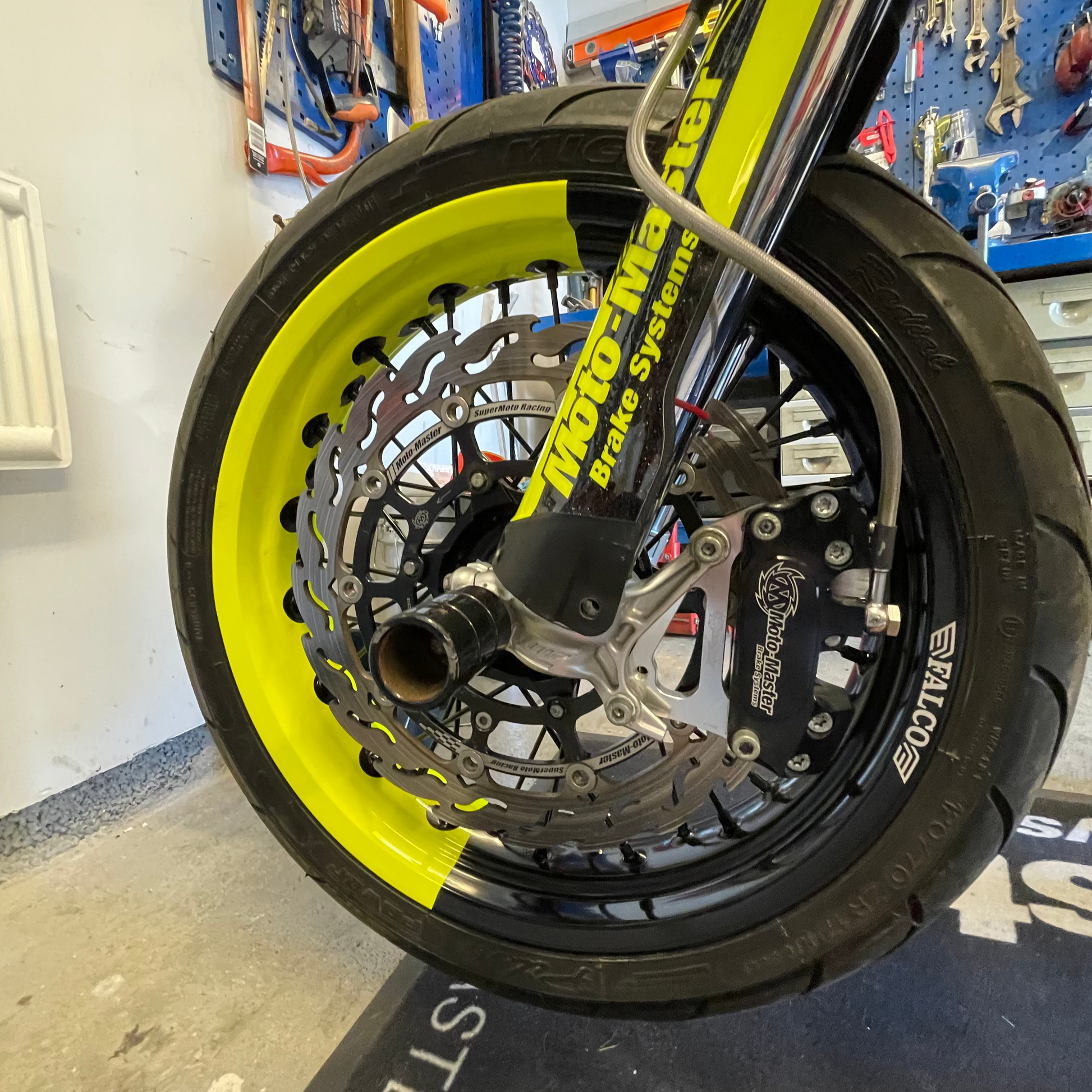 Complete your supermoto build by adding these custom matching wheel graphics that match your kit.