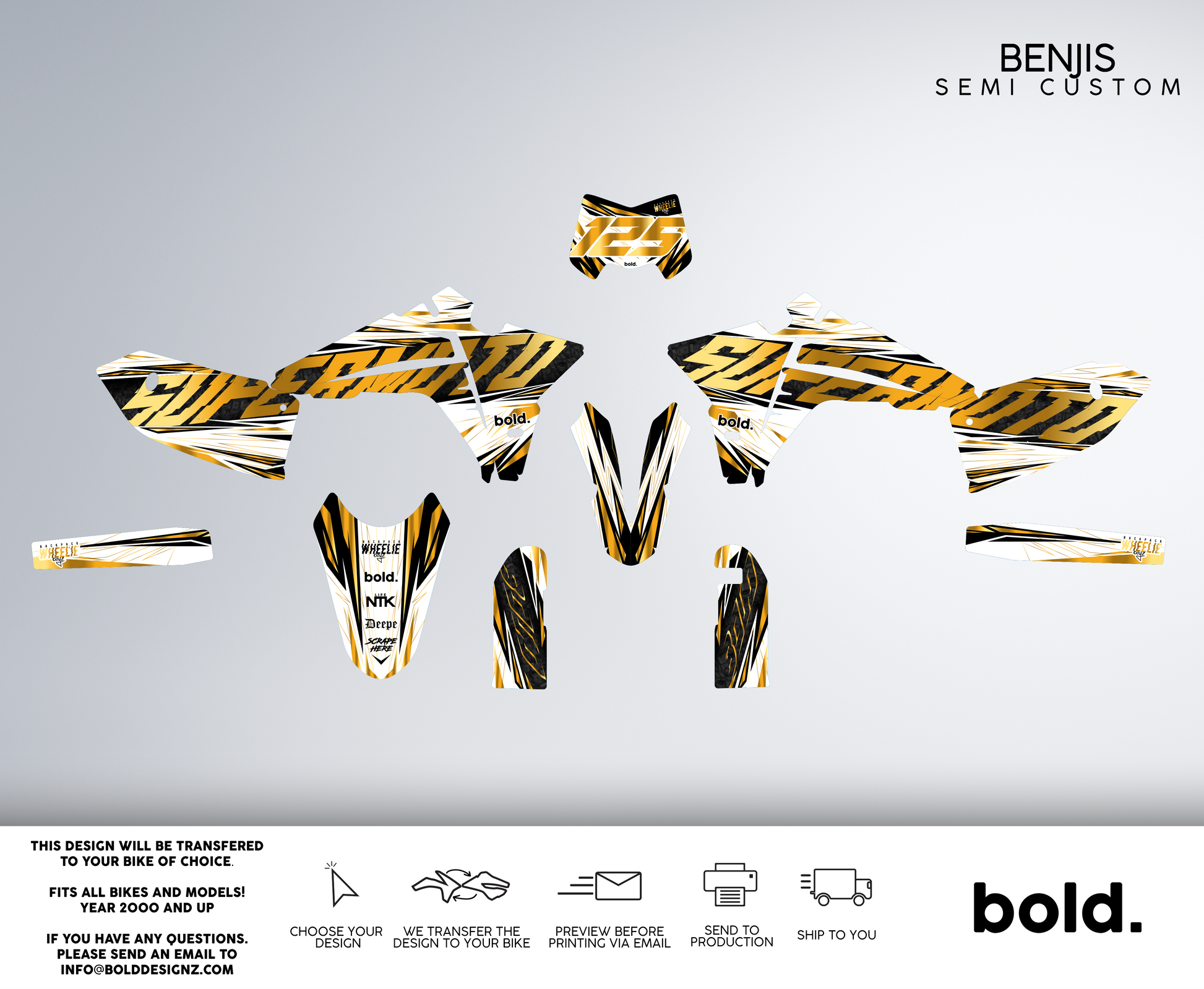 Your graphics will resist scratches, fading, and peeling, ensuring your bike maintains its head-turning looks for years to come. Don't settle for ordinary; embrace the extraordinary. Get your Bolddesignz Supermoto Semi-Custom Graphics and experience the thrill of riding a truly bold and unique bike.