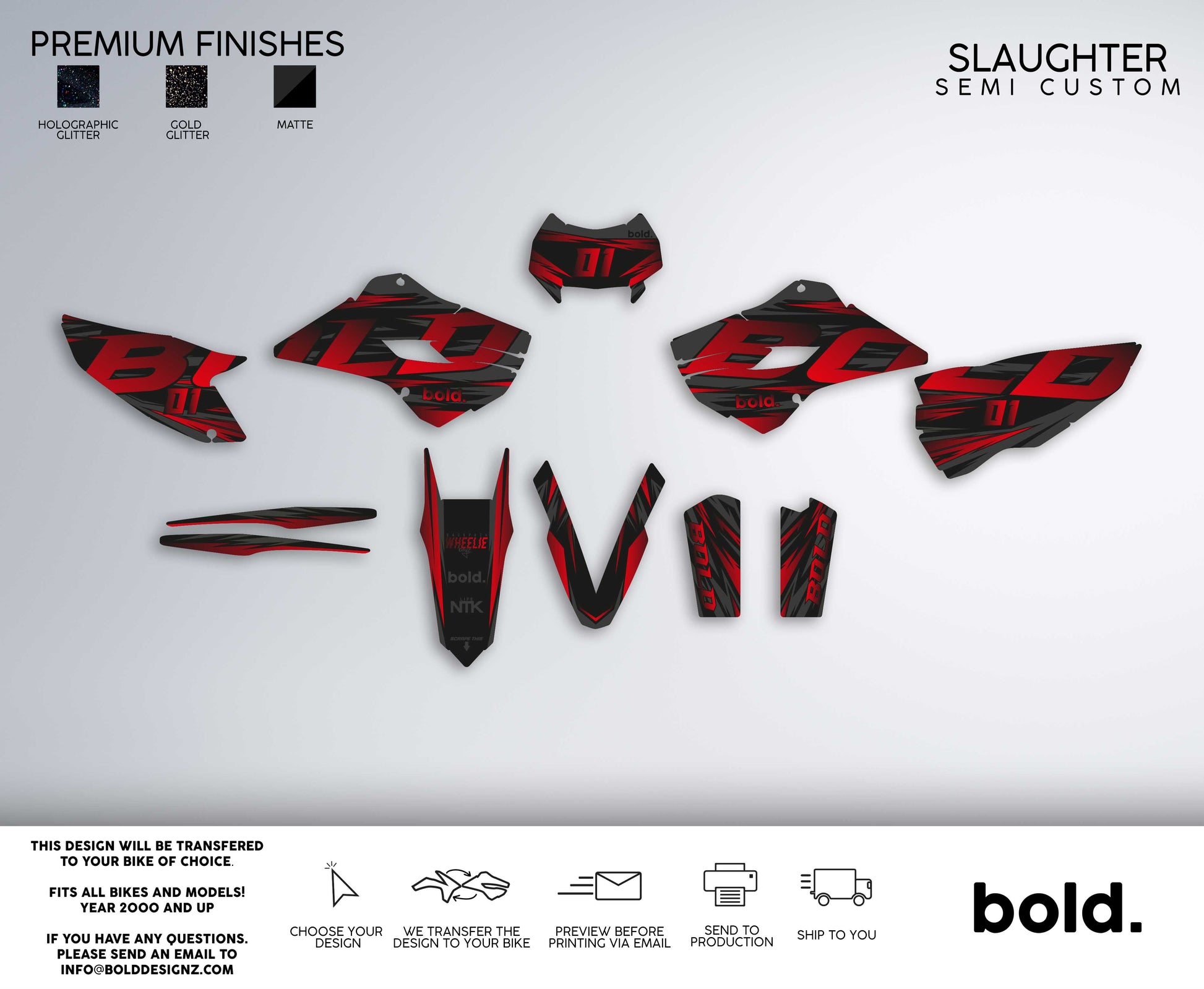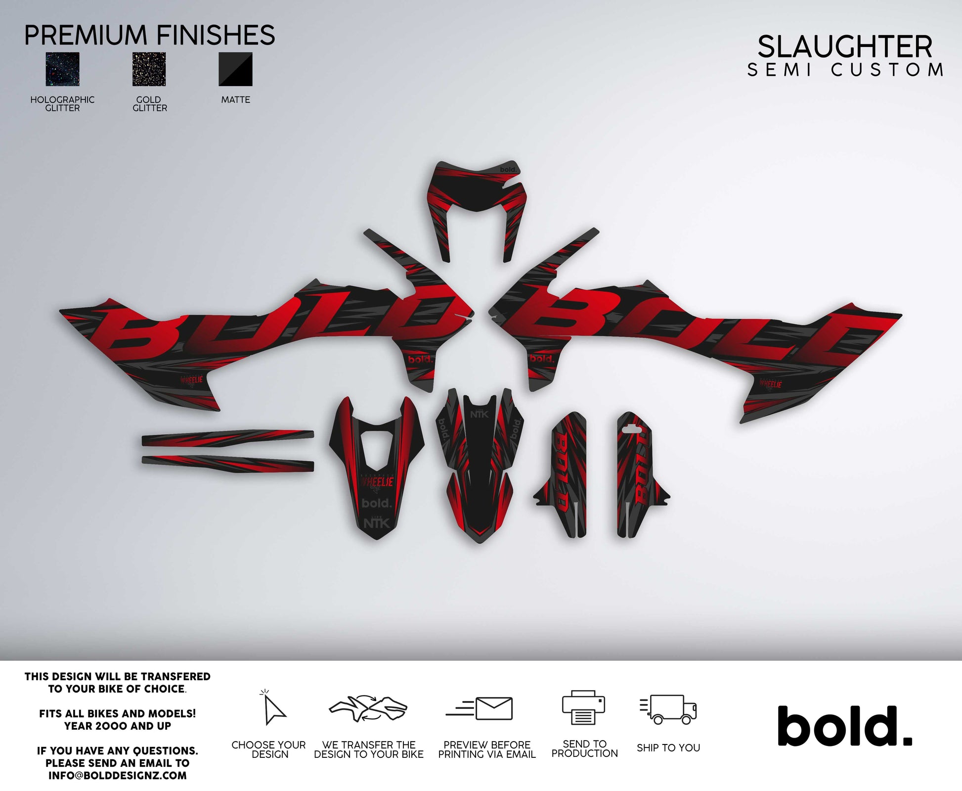 Your graphics will resist scratches, fading, and peeling, ensuring your bike maintains its head-turning looks for years to come. Don't settle for ordinary; embrace the extraordinary. Get your Bolddesignz Supermoto Semi-Custom Graphics and experience the thrill of riding a truly bold and unique bike.