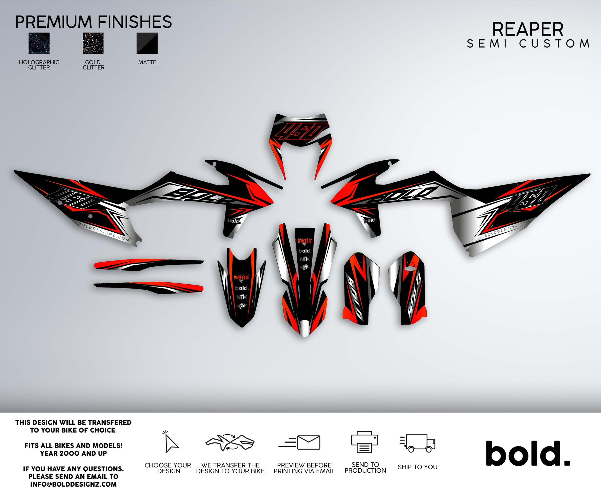 At Bolddesignz, the order process is designed to be easy, streamlined, and completely customized to ensure you get the perfect graphics for your bike. Every customer receives personal attention from a professional designer, making the experience smooth and enjoyable.