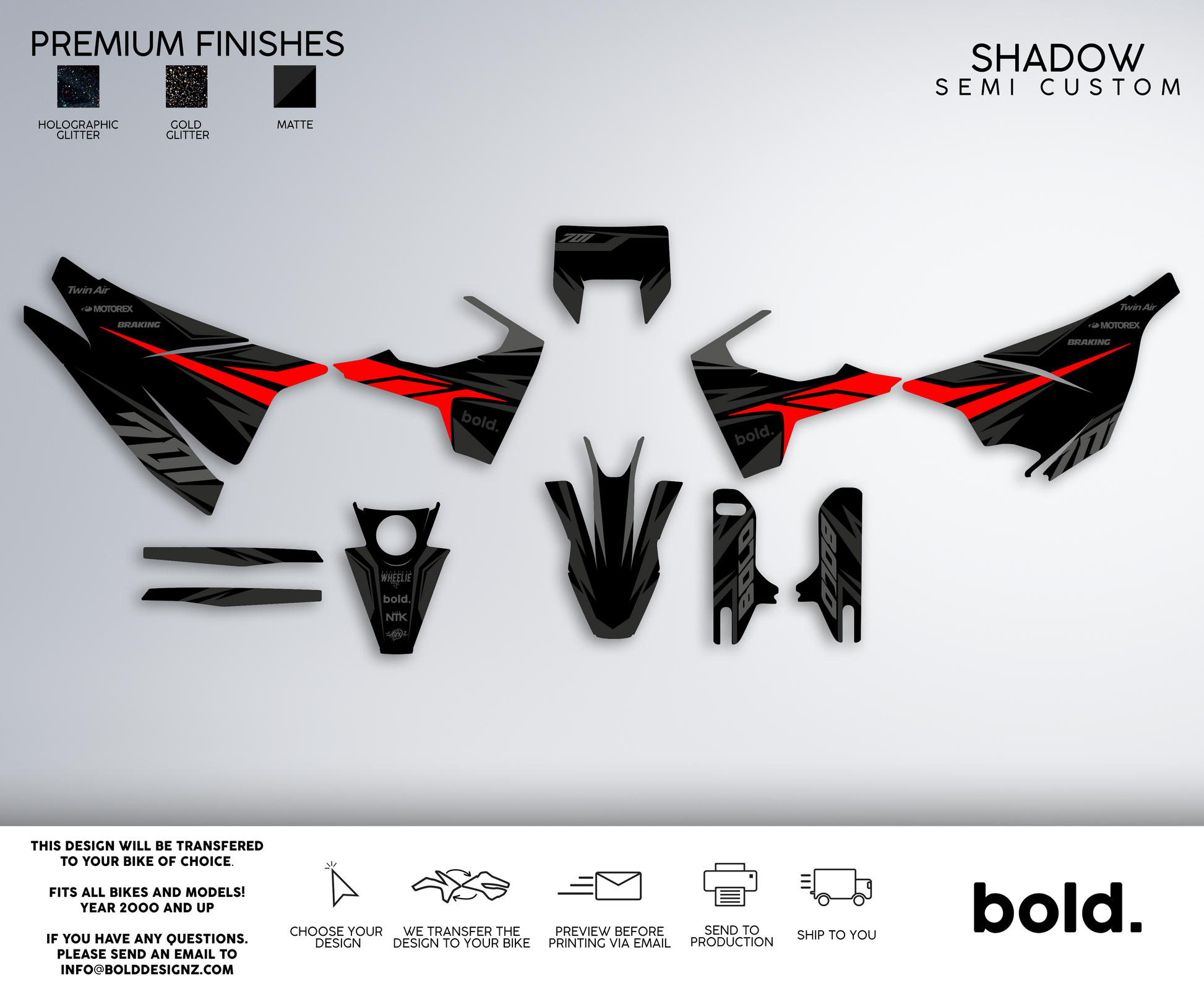 At Bolddesignz, the order process is designed to be easy, streamlined, and completely customized to ensure you get the perfect graphics for your bike. Every customer receives personal attention from a professional designer, making the experience smooth and enjoyable.