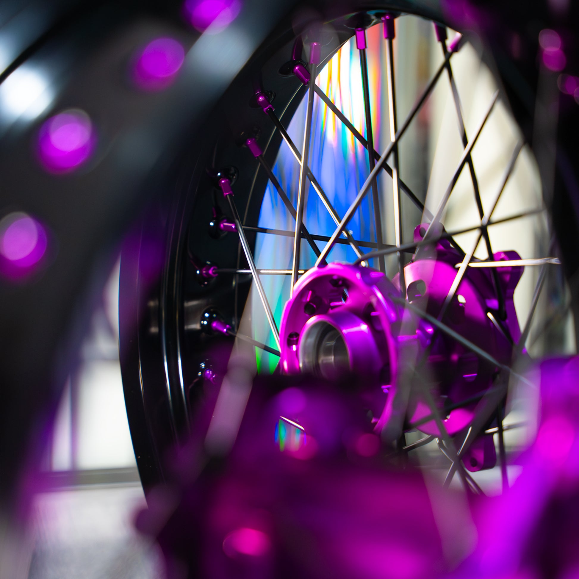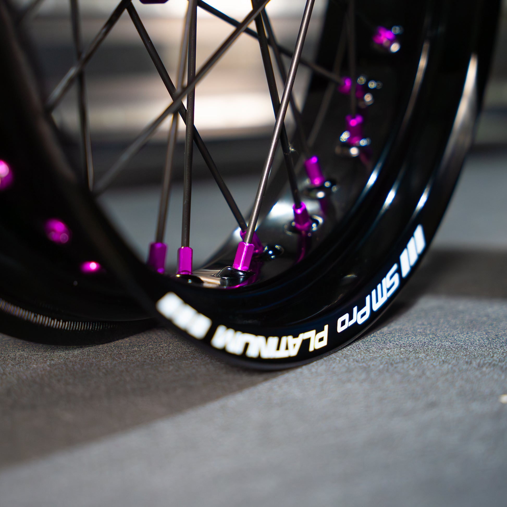 Ride bold. Roll different. Go bold with SMPRO Black/Purple - Supermoto Wheelset.