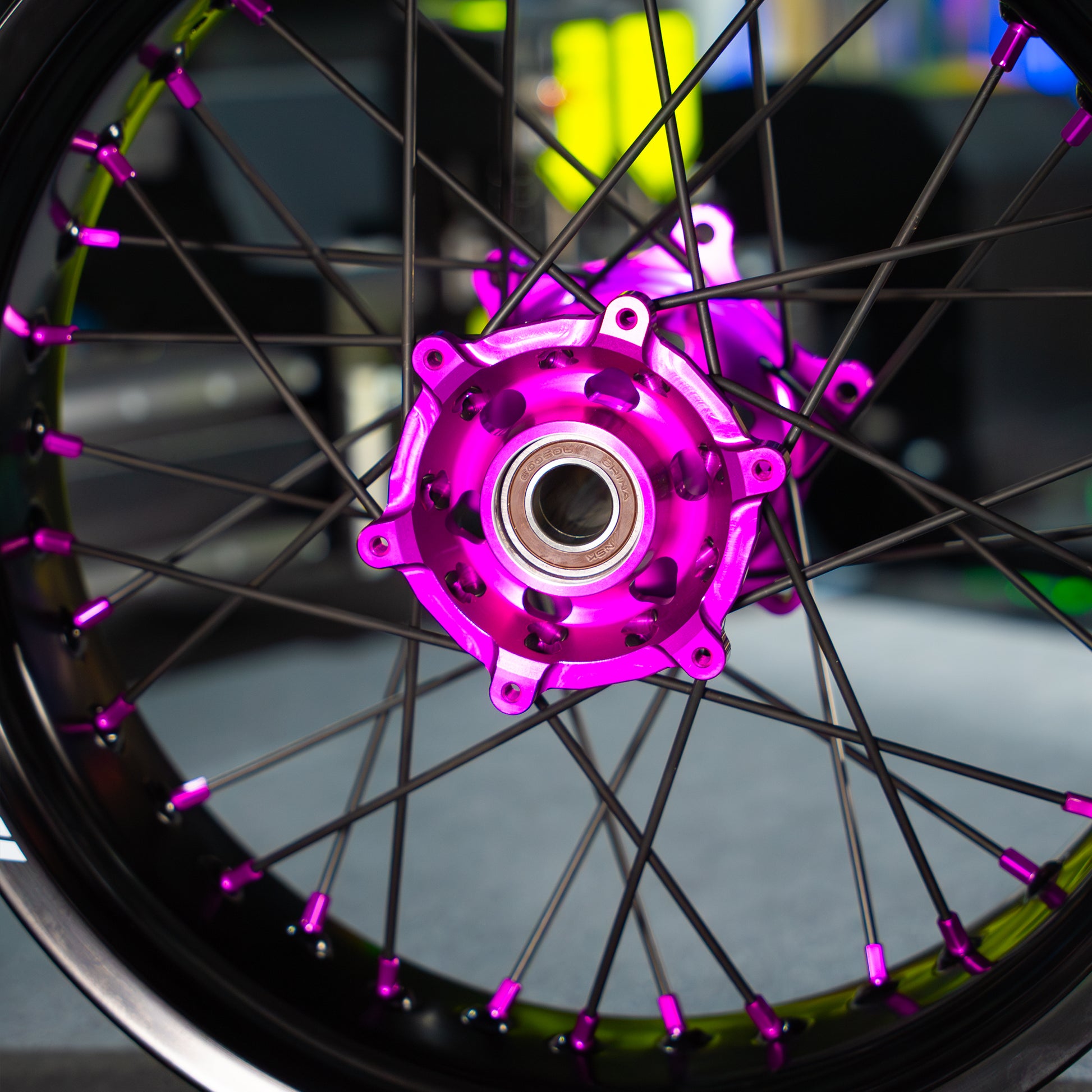 The SMPRO Black/Purple - Supermoto Wheelset gives you the control and confidence to ride harder, corner faster, and stand out everywhere you go. Each set is crafted to match perfectly with your setup - making your supermoto wheels look unique. Get a full customization with SMPRO Black/Purple - Supermoto Wheelset - as a part of our lineup of premium supermoto rims, and bold wheel designs trusted by riders worldwide.