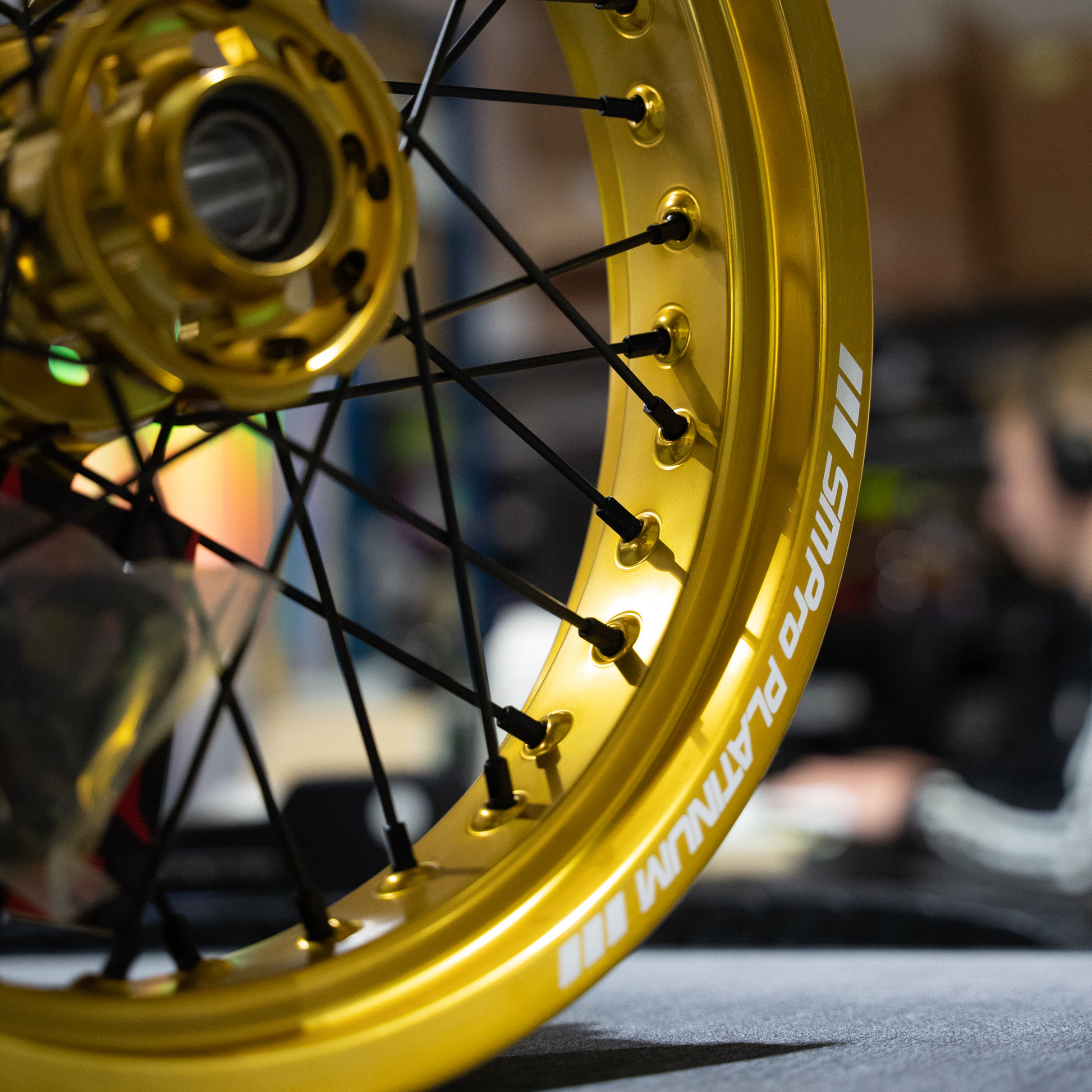Ride bold. Roll different. Go bold with SMPRO Gold/Black | 50/50 - Supermoto Wheelset.