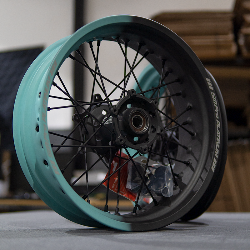 Ride bold. Roll different. Go bold with SMPRO Robins Egg Blue/Cobalt Grey | Supermoto Wheelset.