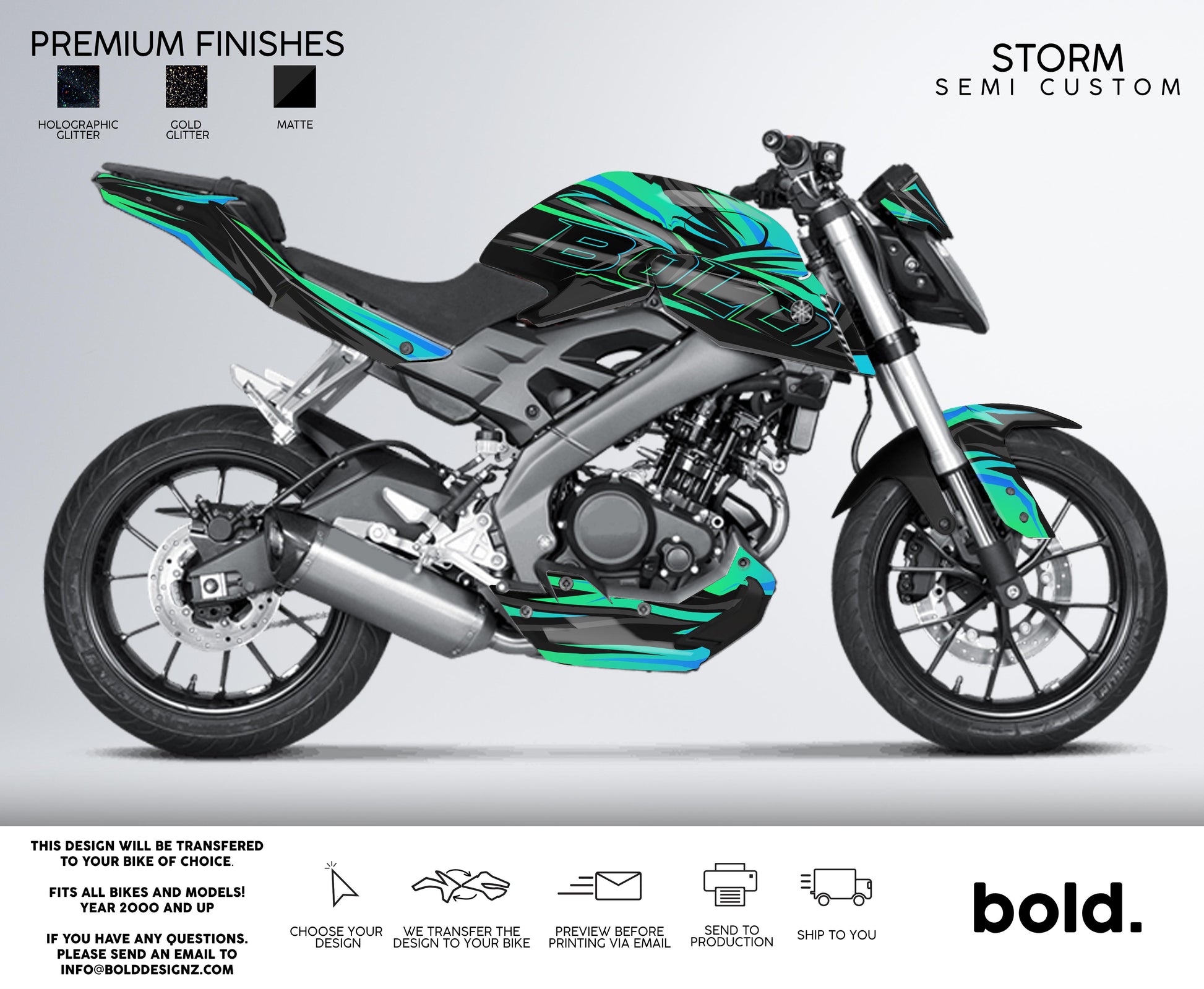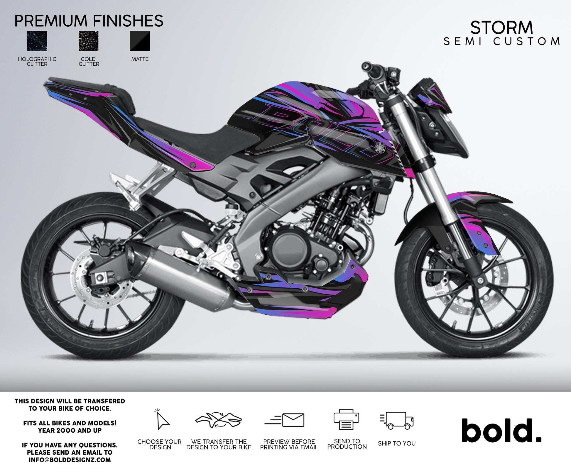Your graphics will resist scratches, fading, and peeling, ensuring your bike maintains its head-turning looks for years to come. Don't settle for ordinary; embrace the extraordinary. Get your Bolddesignz Street Bike Semi Custom Graphics and experience the thrill of riding a truly bold and unique bike.