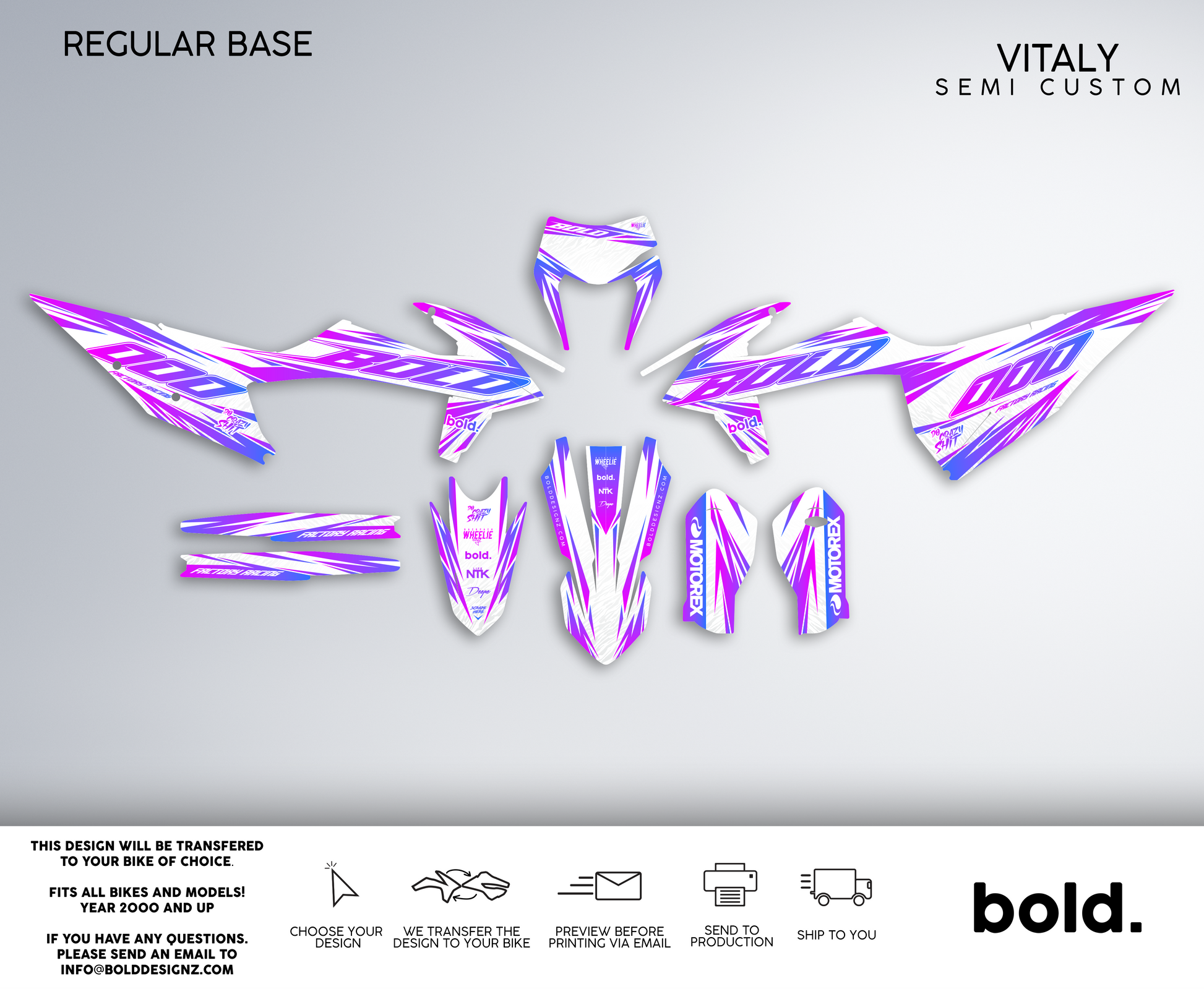 Your graphics will resist scratches, fading, and peeling, ensuring your bike maintains its head-turning looks for years to come. Don't settle for ordinary; embrace the extraordinary. Get your Bolddesignz Supermoto Semi-Custom Graphics and experience the thrill of riding a truly bold and unique bike.